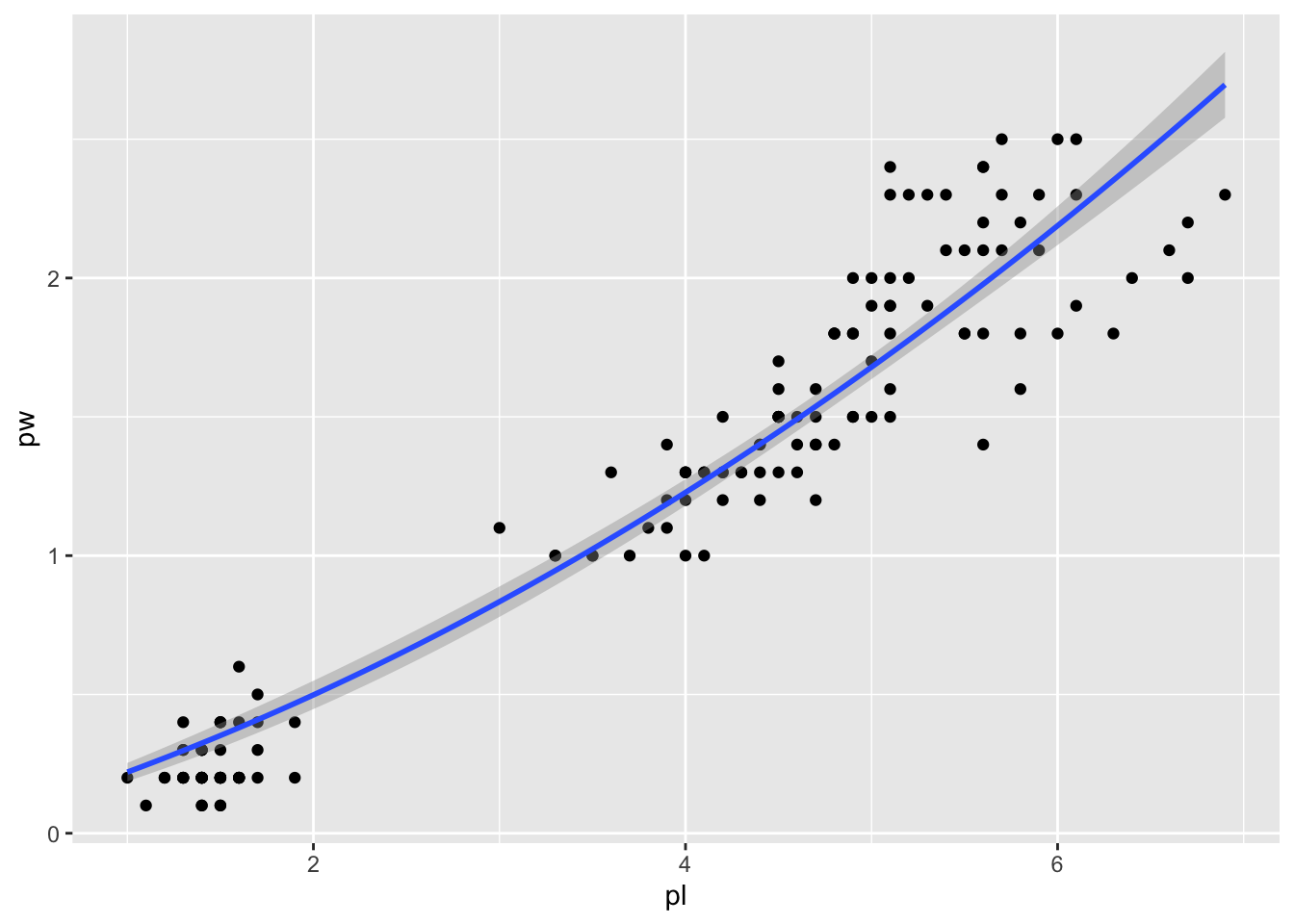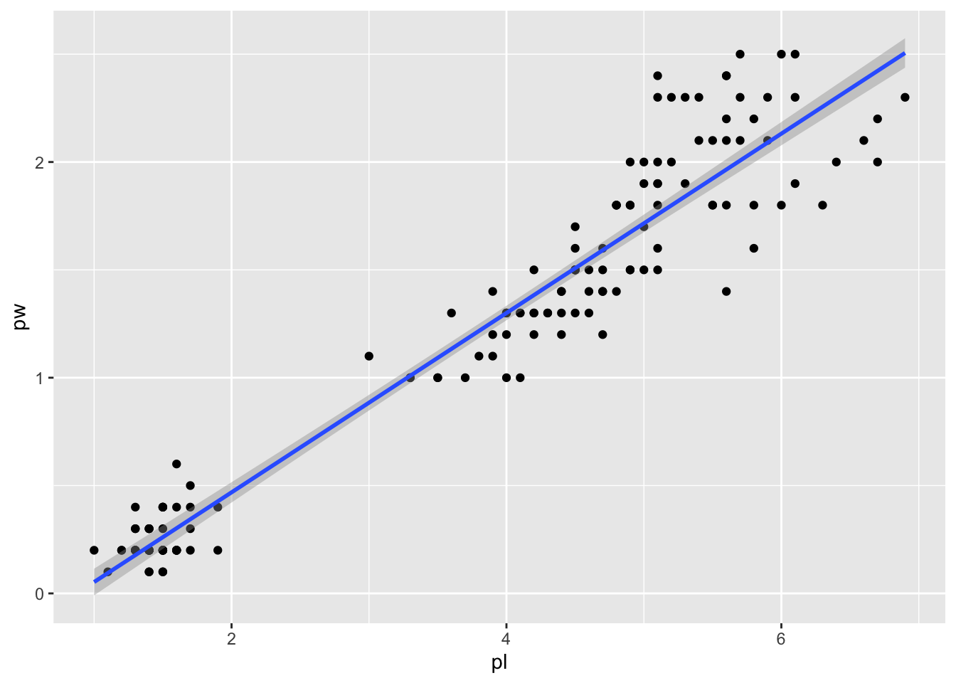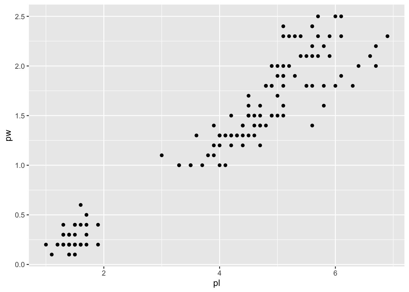 comme cela : ggplot(iris2, aes(x=pw, y=pl))