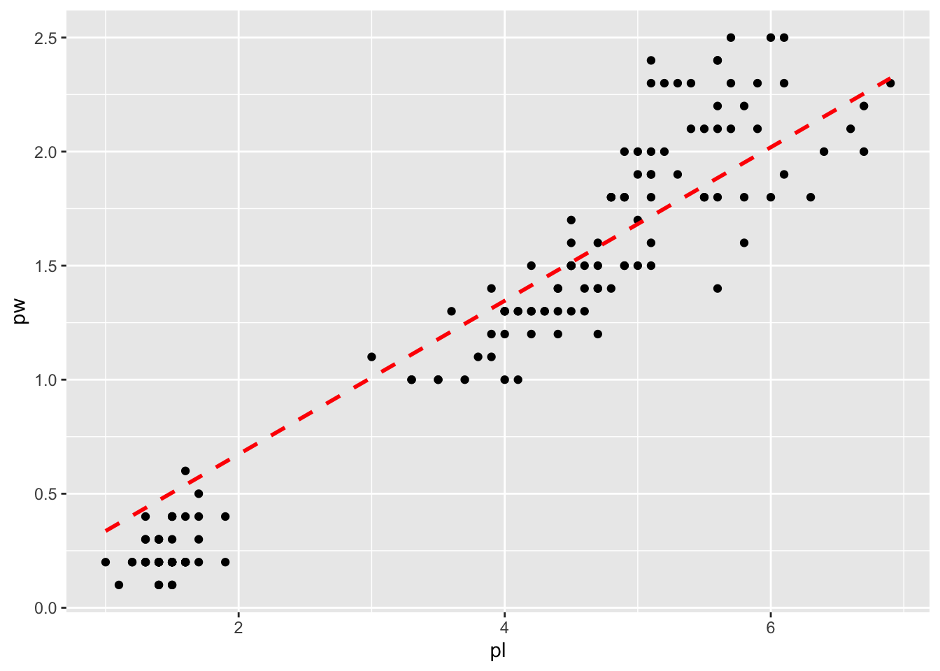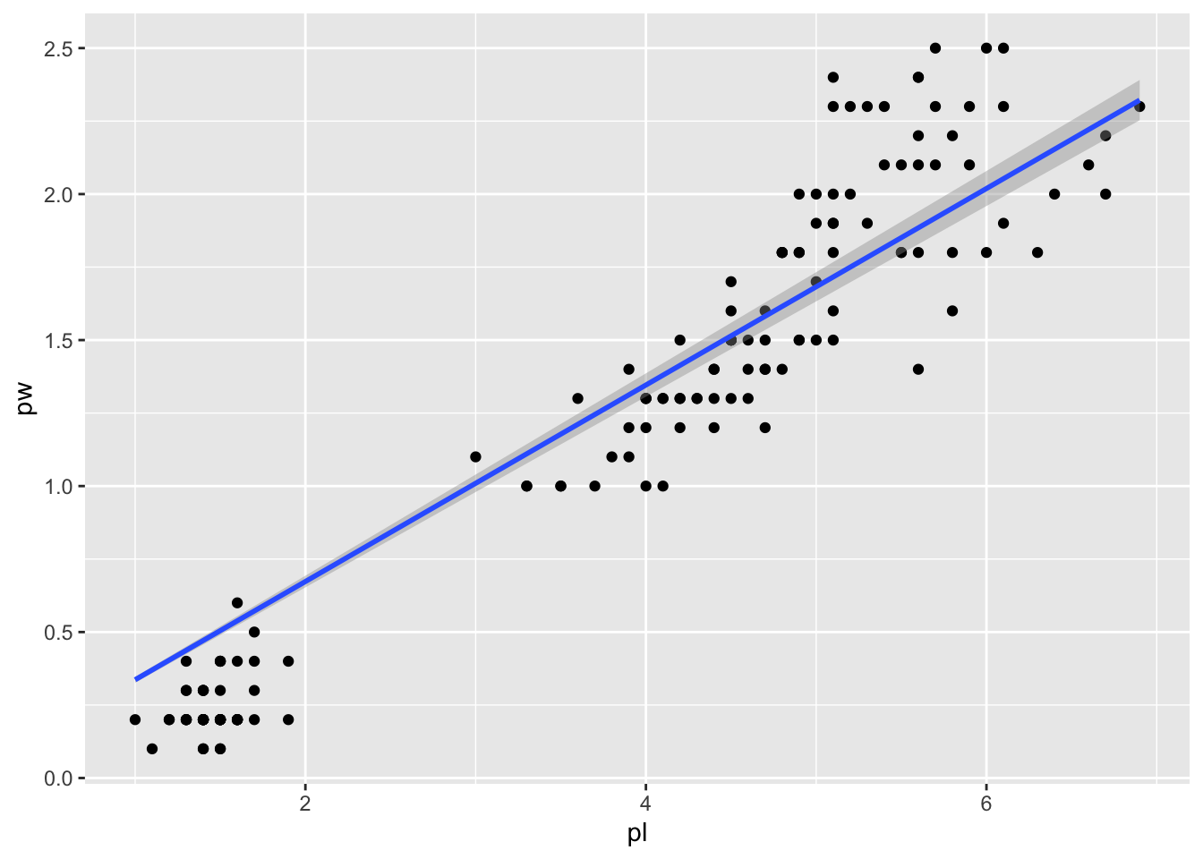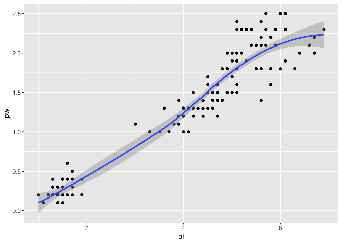 comme cela : ggplot(iris2, aes(x=pw, y=pl))