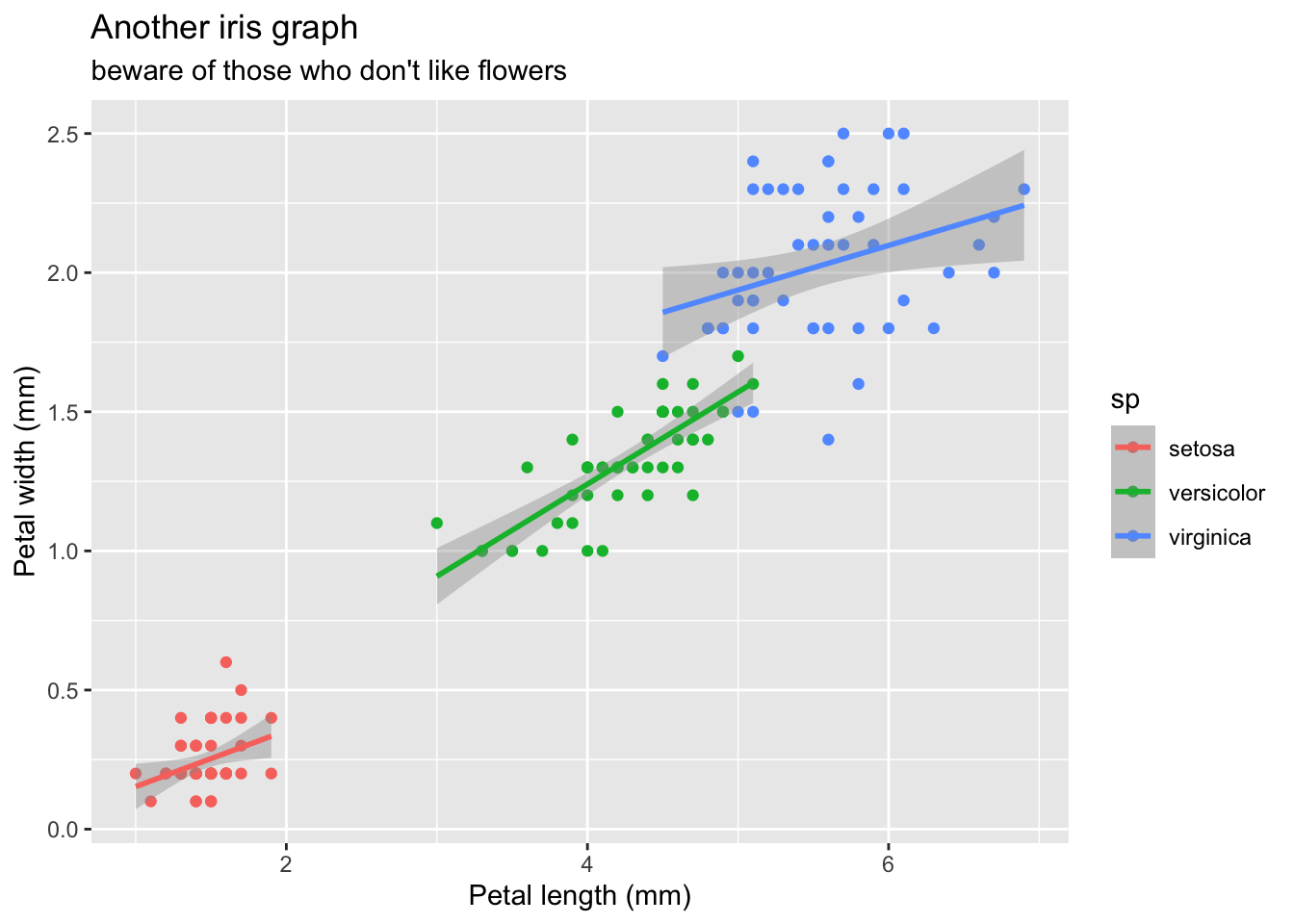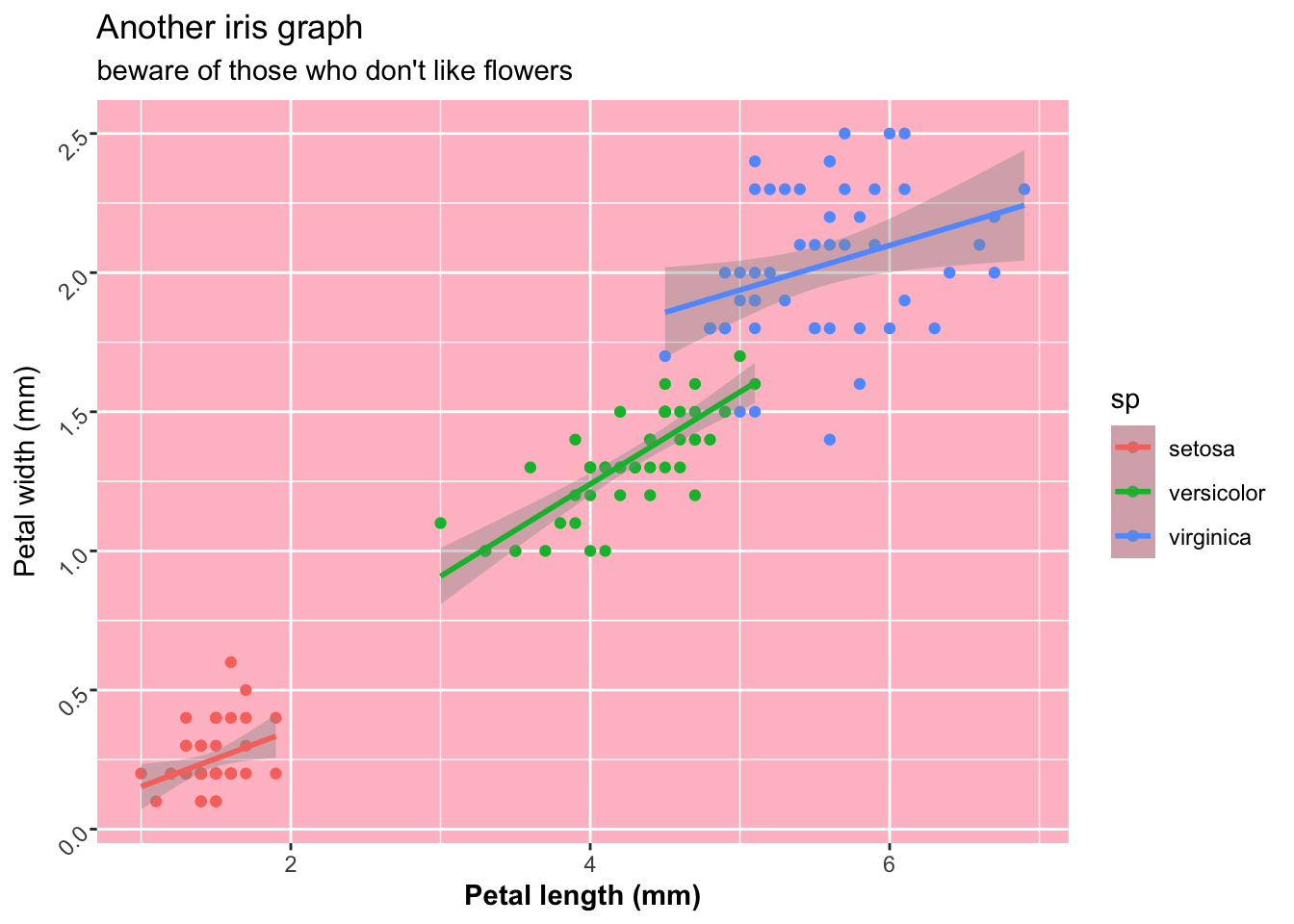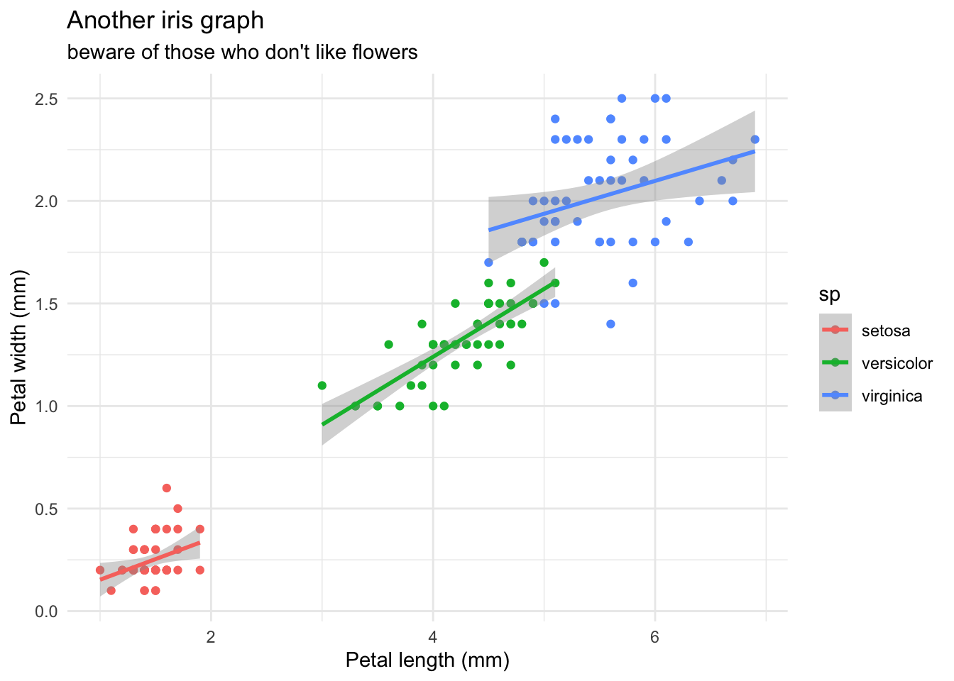 Vous pouvez même modifier le ggplot ainsi obtenu. Ci-dessous, je pousse le bouchon jusqu’à manipuler au tout dernier moment iris_bis