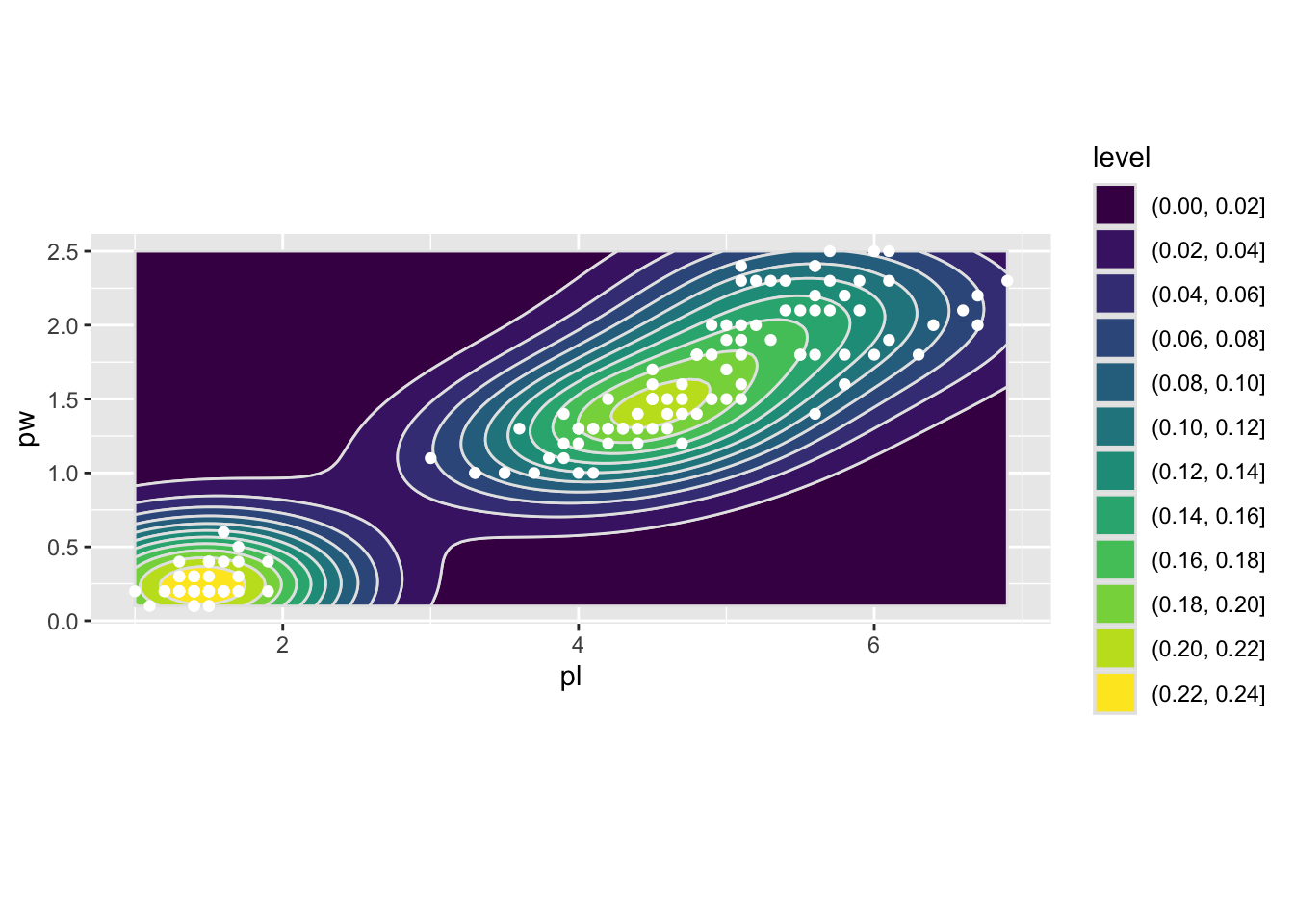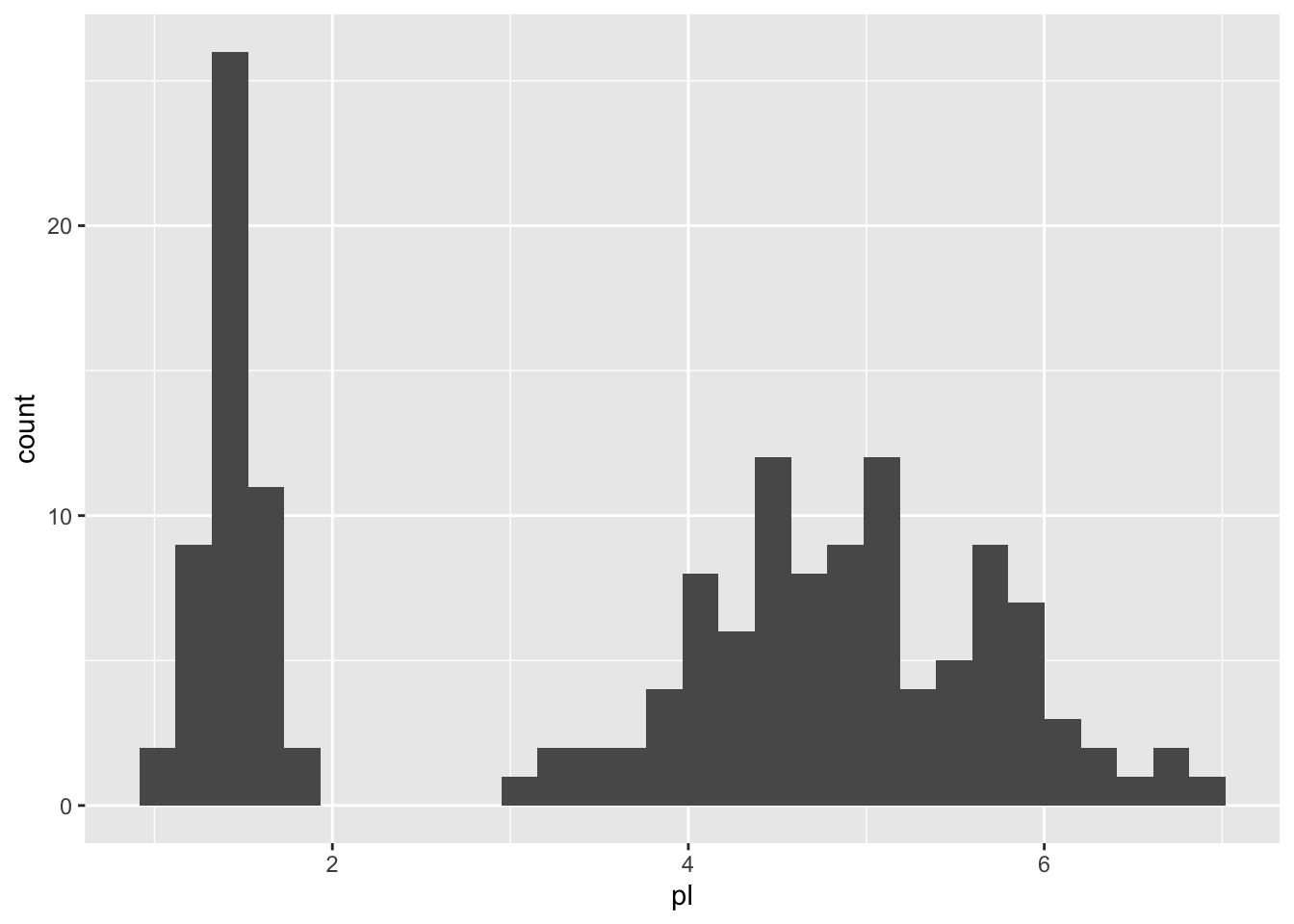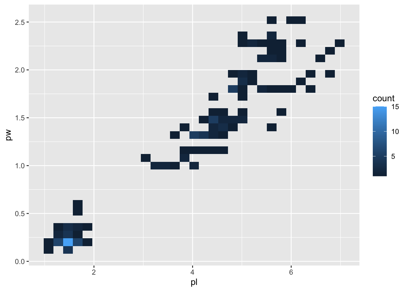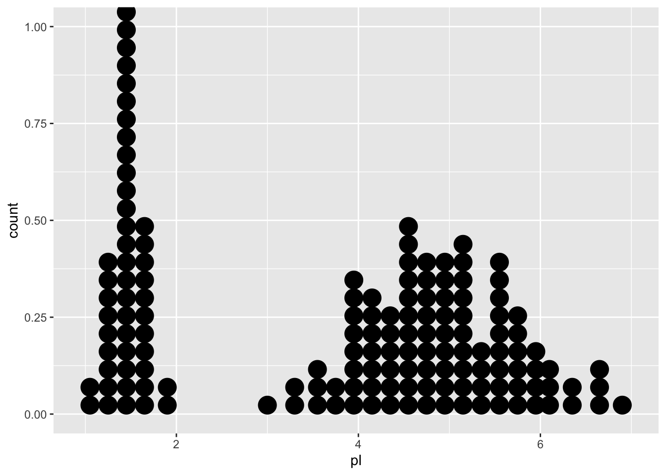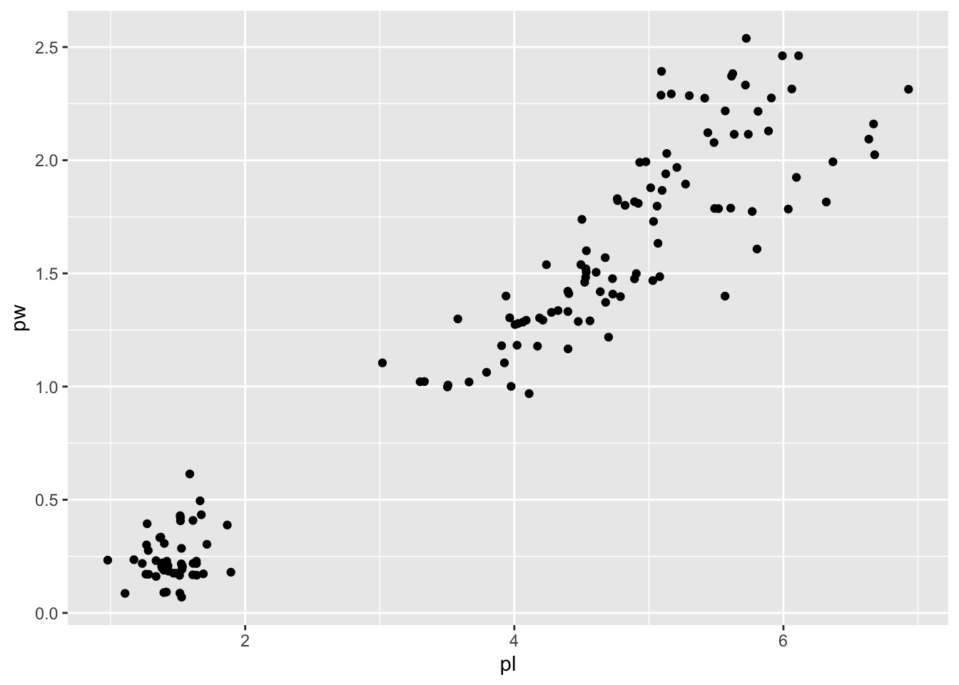Si vous vous amusiez à compter le nombre de points représentés, ou plus intelligemment iris2 %>% select(pl, pw) %>% unique() %>% nrow()