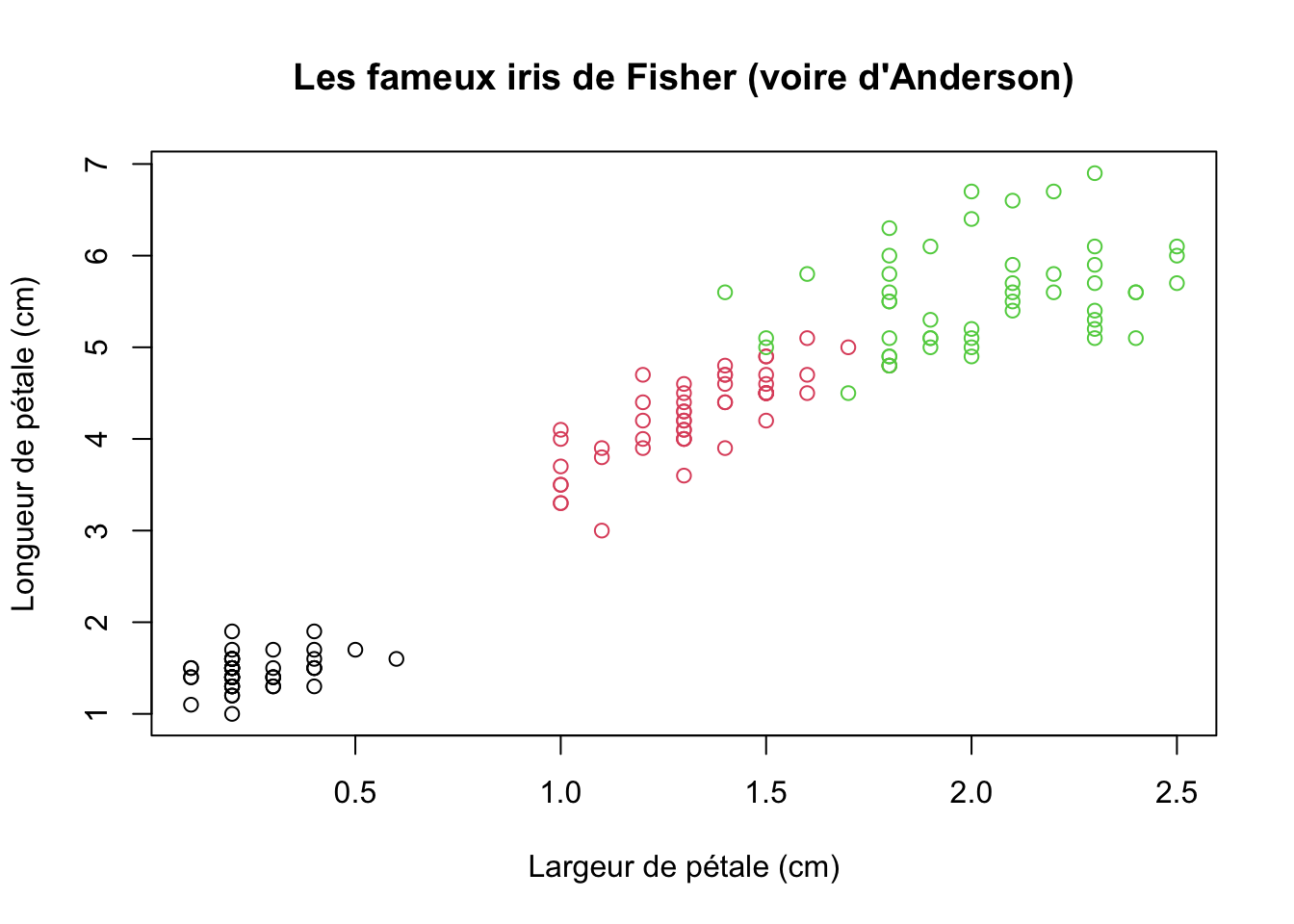 main="Les fameux iris de Fisher (voire d'Anderson)")