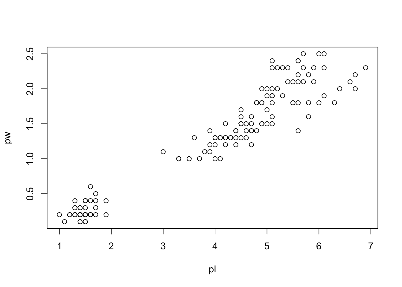 select(pl=Petal.Length, pw=Petal.Width) %>%