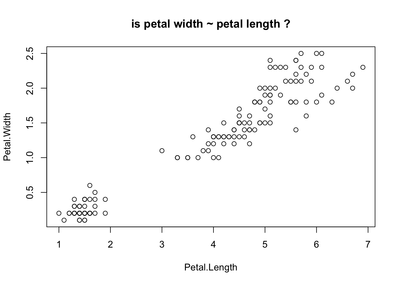 plot (Petal.Width ~ Petal.Length, data= iris,