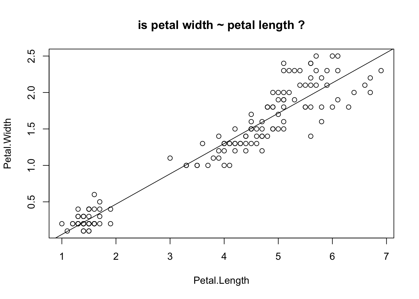 lm(formula = Petal.Width ~ Petal.Length, data = iris)